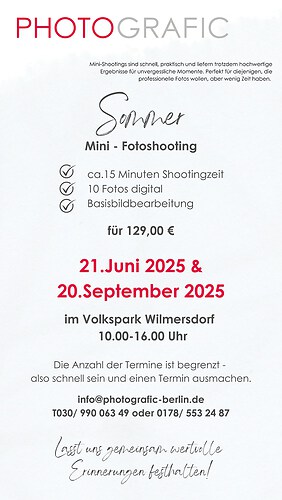 Wir freuen uns, euch zu unserer nächsten Mini-Shooting Aktion im Fotostudio PHOTOGRAFIC einzuladen!